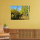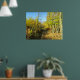 This vibrant moment was captured on a sunny autumn afternoon, where one was enticed to get lost in the woods and indulge in the vivid beauty of the season. The autumnal blend of yellow, green, and golden brown hues was complemented by clear blue skies on this bright and peaceful day.