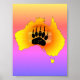 Atardecer retro vintage con garra de oso. Arte de pared personalizado. Versión soleada para el mapa australiano y colores arcoiris pastel en el fondo. Idea de regalo para los osos y sus fans en Australia
