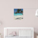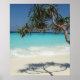 Poster con una hermosa fotografía soleada. Aguas del océano azul turquesa, con una playa de arena blanca. Un árbol tropical en solitario es un lugar agradable para relajarse y disfrutar de este paisaje idílico.