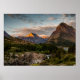 Mount Grinnel towers over Swiftcurrent Lake as the sun rises in the Many Glacier Valley of Glacier National Park.