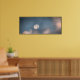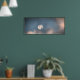 Este poster presenta una luna llena todavía brillando en el cielo al amanecer. El cielo se está iluminando. Las nubes son de tonos rosas y naranjas. La cara de la luna es muy visible. Mejoré digitalmente esta fotografía original para enfatizar el sentimiento dramático.