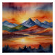 Descripción: Una hermosa pintura acuarela de los paisajes de puesta de sol con coloridas montañas y un cielo suave y soñador.