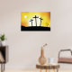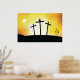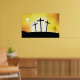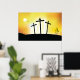 Three crosses on a hill against a sunset sky. This design looks really effective on these Poster
