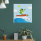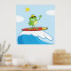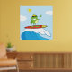 Una rana surfeando en una gran ola. Este diseño parece realmente efectivo en este Poster