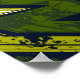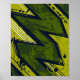 Esta obra de arte dinámica presenta formas angulosas y vagabundas en una composición caótica pero deliberada. Dominado por los tonos verde claro y verde profundo, el diseño se mueve con energía sobre un fondo negro oscuro. Las líneas diagonales blancas recortan la escena, agregando ritmo y dirección, mientras que las texturas salpicadas evocan la expresión urbana cruda. La interacción de la geometría aguda y la aleatoriedad como pintura crea un lenguaje visual que se siente rápido, rebelde y moderno, perfecto para la ropa de calle, la marca digital o la estética deportiva.