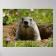 Groundhog sonriente emergiendo de la madrugada entre los florecimiento primaverales y la hierba verde. Un manto adorable y sonriente emerge de manera delicada de su madriguera, rodeada de vibrantes flores primaverales y de exuberante hierba verde.
