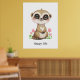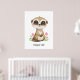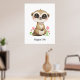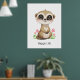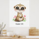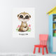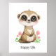 Suricata bebé y flores rosadas póster feliz. El texto se puede personalizar. Las suricatas simbolizan valores familiares, conciencia y buena fortuna.