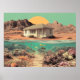 This surreal artwork presents a striking contrast between two worlds coexisting in perfect silence. A modest desert house rests beneath a vast sun and rugged mountains, surrounded by warm, arid tones that evoke isolation, stillness, and quiet introspection. The scene feels familiar and grounded—yet just below the surface, an entirely different reality unfolds.
