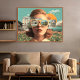Póster Surreal female portrait with retro sunglasses