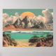Póster Surreal Ocean and Mountain Landscape with Waves