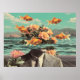 Póster Surreal Portrait With Goldfish Flowers And Ocean