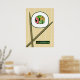 Poster con un divertido y único diseño de sushi. Los palillos sostienen un rollo de sushi con la palabra "sushi" siendo los ingredientes. El diseño tiene un fondo parecido a una estera rodante de sushi y la exclamación "mmm" se encuentra en la parte inferior de la obra. Un gran poster para expresar tu amor por el sushi.