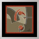 Arte gráfico de borde duro con un efecto textural, el susurro del caballo y el hombre como un espíritu. Colores suaves y silenciosos del sudoeste y la influencia nativa estadounidense. Arte original de Margaret Loftin Whiting.