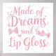 Embrace your ultra-feminine side with this adorable "Made of Dreams and Lip Gloss" design. Featuring a trendy coquette aesthetic, this graphic combines a cute pink script font with sweet accents like a bow, candy, and sparkles. It’s the perfect sassy and sweet statement for makeup lovers, fashionistas, or anyone who loves all things pink and girly. A charming addition to your aesthetic collection!