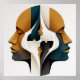 Póster Symmetrical Abstract Portrait in Ochre and Slate