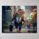 Si los dinosaurios no se extinguieran. Traje de T-Rex con maletín que recorre las calles de la ciudad.