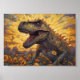 Póster T-rex en un campo de girasol