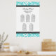 Póster Tabla de asientos 5 tablas Aqua Damask Negro