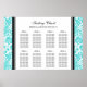 Elegante y contemporáneo personalizable ocho mesas para el boda en un moderno patrón verde azulado azul turquesa, negro y blanco clásico de adamascado floral. Personalizar con el nombre de su invitado para hacer un asiento único para su boda. Contáctenos para obtener una tabla de personalizados para un número diferente de huéspedes.
