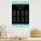 Póster Tabla de asientos 8 tablas Aqua Black Damask