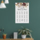 Póster tabla de asientos boda 14 tablas, peonías burdeos