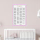 Póster Tabla de asientos Boda de 190 franjas rosadas/blan