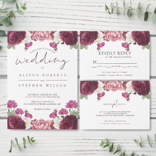 Hermoso diseño Boda Floral Borgoña. El diseño es fácil de personalizar, si desea cambiar los tipos de letra haga clic en el personalizar. Los colores son perfectos para los bodas de primavera y verano. Puedes visitar mi tienda por productos más hermosos.