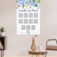 Póster Tabla de asientos de 11 mesas de Hydrangea azul gr