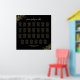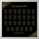 Esta bonita tabla de bodas tiene capacidad para 27 mesas con capacidad para 10 personas por mesa o 270 comensales. Presenta un diseño sencillo pero elegante con textos dorados sobre fondo negro y un diseño de imitación de Relieve metalizado dorado en las esquinas. El título está escrito en sofisticada caligrafía de guión y dice: Por favor, encuentre su mesa. Elegante y refinado.