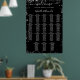 Póster Tabla de asientos de boda de plata negra 18 tablas