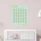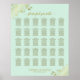 Este bonito cuadro de asientos bodas presenta un diseño sencillo y elegante con un fondo verde claro o neonormenta, detalles de Relieve metalizado dorados falsos o fibra floral en las esquinas y un título de caligrafía con guión que dice "por favor, encuentre su mesa". La tabla tiene asignaciones para 300 personas en 30 mesas (10 asientos por mesa).