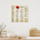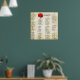 Póster Tabla de asientos de casquillos de hojas de corazó