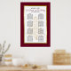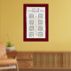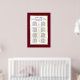Añada su propio toque especial a este elegante diseño con escritura moderna, texto en burdeos y negro, incluyendo un árbol de Navidad dorado estrellado con un marco metálico de oro con un fondo burdeos. Este diseño de la gráfica de asientos incluye los nombres de la novia y el novio, junto con las palabras "Come, bebe y sé moro" y "Encuentra tu asiento". Se proporcionan plantillas para un máximo de ocho tablas con un máximo de 8 ó 9 nombres por tabla.