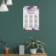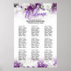La tabla de asientos de la recepción de bodas presenta un bonito diseño floral blanco y morado que ayudará a los huéspedes a encontrar las mesas de la recepción de bodas y que combina con los colores bodas elegidos. El gráfico mide 20X30 pulgadas (50,8x76,2cm) y se puede montar sin esfuerzo en una tabla o pared. Los nombres de los clientes se han ordenado alfabéticamente para cada mesa, lo que garantiza una disposición de asientos fluida. Si necesita un tamaño diferente, no dude en explorar otras opciones que mantengan una proporción similar.