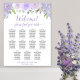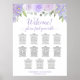 Esta bonita tabla de bodas de 11 mesas presenta un diseño de moda de boho floral con rosas acuáticos pintados a mano, flores y flores en tonos violeta polvorientos, lavanda y lila, hojas de eucalipto y vegetación en el jardín. El elegante título de la caligrafía del guión dice "¡Bienvenido!, por favor, encuentre su mesa" y hay espacio para la fecha de la pareja y del boda en la parte inferior. Con capacidad para 110 personas (10 asientos por mesa), este cuadro es una forma maravillosa de añadir belleza y estilo a la recepción de tu boda, al tiempo que facilita a tus huéspedes la búsqueda de sus asientos.