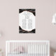 Añada un toque especial a este elegante diseño con los tonos clásicos de agate negro, blanco y gris con venas de Relieve metalizado oro rosa metálico. Este diseño de la gráfica de asientos incluye los nombres de la novia y el novio, junto con las palabras "Come, bebe y sé moro" y "Encuentra tu asiento". Se proporcionan plantillas de hasta siete tablas con hasta ocho nombres por tabla.