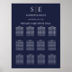 El gráfico de asientos de color azul marino y boda dorado con sus iniciales en monograma, esta moda, elegante carta de asientos, puede ser personalizada con su información en letras modernas. Diseñado por Thisisnotme©