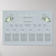 Moderna tabla de asientos Eucalyptus - 6 mesas Impresión Poster Trae un toque de elegancia natural a su día especial con nuestra moderna tabla de asientos Eucalyptus, bellamente diseñada para hasta 6[ mesas más la mesa superior. Este poster cuenta con exuberantes hojas de eucalipto en acuarela y tipografía minimalista, creando un aspecto fresco y contemporáneo que complementa cualquier decoración de boda o evento. Los tranquilizantes tonos verdes y el diseño depurado permiten a los clientes encontrar fácilmente sus asientos, añadiendo un punto focal elegante a la entrada de la recepción.