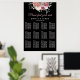 Póster Tabla de asientos Rosa de Boda negro con flores
