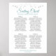 Haz que tu recepción de bodas sea hermosa con esta tabla de asientos. Diseñadas como parte de nuestra suite nupcial Verde azulada y Gray Elegant Wedding, presentan un diseño sencillo y elegante con texto verde azulado o turquesa y gris sobre un fondo blanco con un Relieve metalizado floral plateado. Este gráfico muestra las asignaciones de tablas para que sus invitados tengan facilidad para encontrar la tabla correcta.