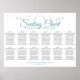 Haz que tu recepción de bodas sea hermosa con esta tabla de asientos. Diseñado como parte de nuestra suite de bodas Verde azulada y gris elegante, ofrece un diseño sencillo y elegante con texto verde azulado o turquesa y gris sobre un fondo blanco con un borde floral de imitación de Relieve metalizado plateado. Este gráfico muestra las asignaciones de tablas para que sus invitados tengan facilidad para encontrar la tabla correcta.