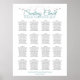Haz que tu recepción de bodas sea hermosa con esta tabla de asientos. Diseñado como parte de nuestra suite de bodas Verde azulada y gris elegante, ofrece un diseño sencillo y elegante con texto verde azulado o turquesa y gris sobre un fondo blanco con un borde floral de imitación de Relieve metalizado plateado. Este gráfico muestra las asignaciones de tablas para que sus invitados tengan facilidad para encontrar la tabla correcta.