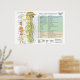 Imagen anatómica colorida que muestra el sistema nervioso autónomo en relación con la columna vertebral y los órganos internos. Nervios que representan el sistema simpático, parasimpático y cerebralespinal. El poster quiropráctico enumera los efectos de la subluxación espinal sobre las áreas corporales y los posibles síntomas asociados. Color codificado por el nivel espinal.