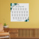 Este bonito cuadro de boda de 26 mesas combina el encanto rústico con el estilo elegante. El diseño floral rústico de moda boho está adornado con hermosos rosas acuáticos pintados a mano y flores en tonos verde azulados, turquesa, aqua y cian. En todo el hotel se suceden deliciosas brotes de eucaliptos y de vegetación, acompañadas de un sofisticado título de caligrafía. Con capacidad para 260 comensales y 10 comensales por mesa, este cuadro permite a los clientes encontrar fácilmente su mesa.