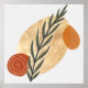 Un diseño inspirado en boho de formas simples en colores rústicos de marrón, beige y naranja con un tallo de planta floral como el foco.