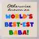 Las mejores camisetas, caramelos, tazas, tarjetas, pegatinas, bollos, imanes y otras prendas de vestir de baba y regalos con un texto brillante que dice "¡Lo demás conocido como la mejor baba del mundo!".
