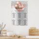 Una tabla de asientos para una fiesta de cumpleaños de niñas. Un fondo falso plateado decorado con oro rosa y giros falsos de plata, pinturas de goteo, globos. Personalice y añada los nombres de los invitados.
