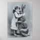 Póster Tarjeta de Post Antiguo Chica Victoriano Conejo de