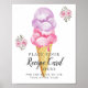 Caprichoso / señal de ducha de boda con ilustración de acuarela de cucharadas de helado rosa y púrpura en un cono de gofre y flores rosadas. El texto dice "coloca tu tarjeta de receta aquí para que la novia la use año tras año."
