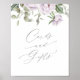 Infórmese a sus huéspedes sobre dónde dejar sus regalos con este elegante cartel, con flores moradas y vegetación.